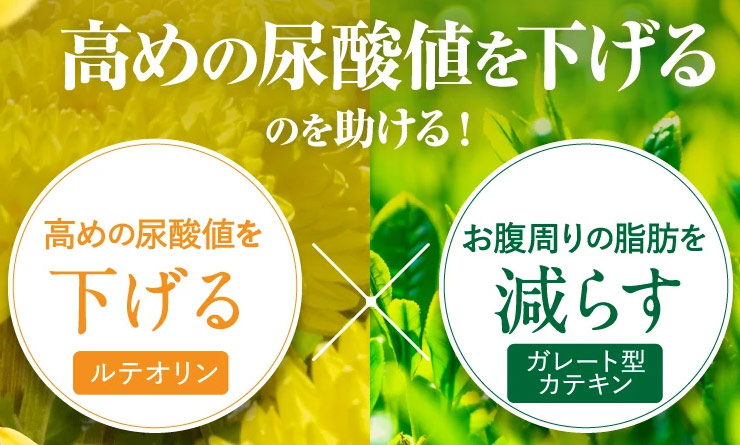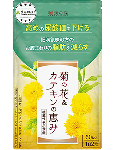 『菊の花&カテキンの恵み』は高めの尿酸値と脂肪の低下の機能を持つ機能性表示食品です。