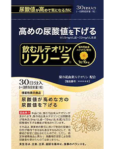 『飲むルテオリンリフリーラ』は菊の花由来のルテオリンを配合した尿酸値対策サプリです。尿酸値低下の作用を期待できます。
