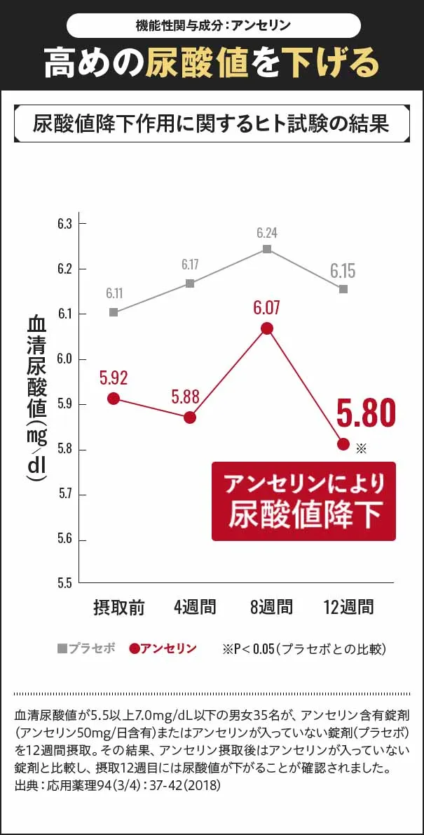 アンセリン配合の尿酸値ケアサプリ